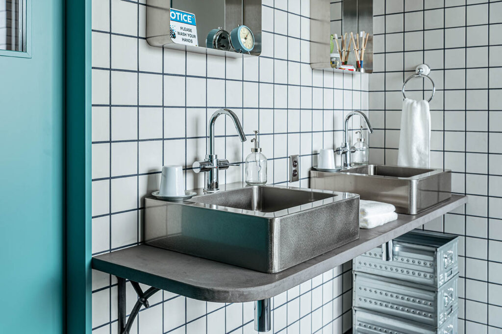 洗練された中にも無骨さを感じるステンレスのシンクは光沢を抑えたバイブレーション仕上げを施し、指紋がつきにくい塗装は、美しさだけでなく手入れのしやすさも配慮されています。